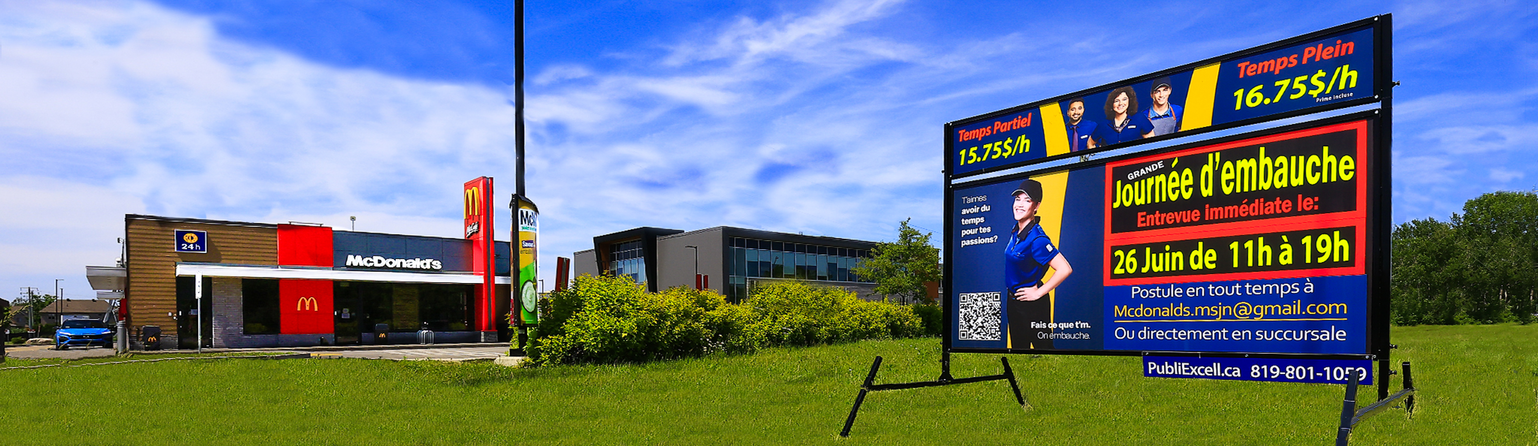 Avec une des plateformes de publicité mobile des plus efficaces, PubliExcell incorpore l’impact du texte fluorescent avec de superbes images imprimées pour faire ressortir votre message. PubliExcell répond à vos besoins de visibilité marketing au niveau local, régional et même plus avec la location de panneaux portables et de remorques publicitaires professionnelles.
